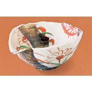 【美濃焼】 赤絵の鉢 白流赤絵万暦片口深鉢