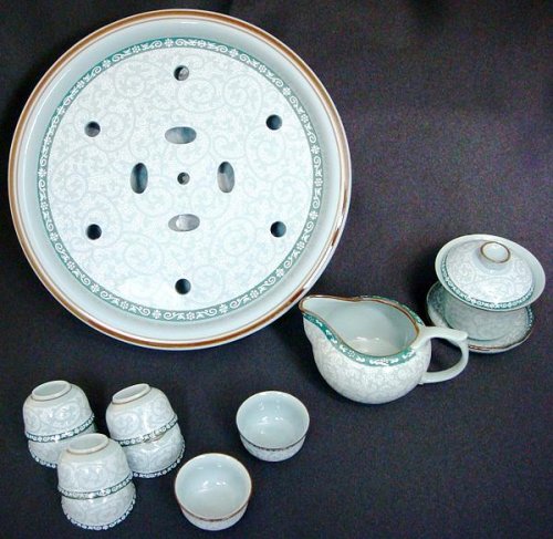 潮州産の現代風茶具セット。 清楚な色使いと文様で、中国茶や紅茶をゆっくりと楽しむのにピッタリ☆